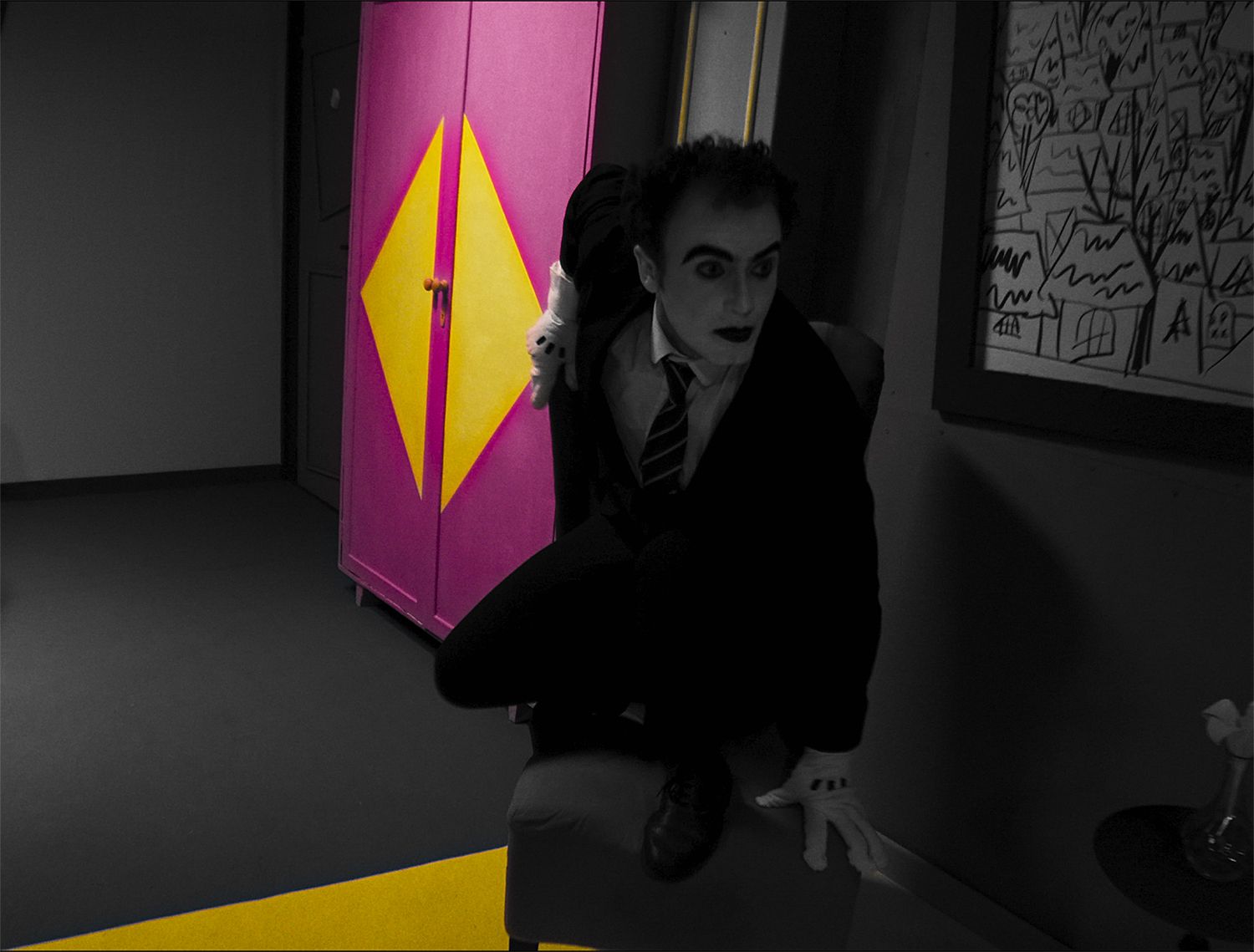 Bruno has lived for so long in a black and white environment that he forgets what colors are, as well as his phobia of them. Seeing so many colors inside a fruit basket, Bruno rediscovers his fear and the effects of his phobia. In the end he discovers that he is cured of his phobia and that he can leave his vision without color.