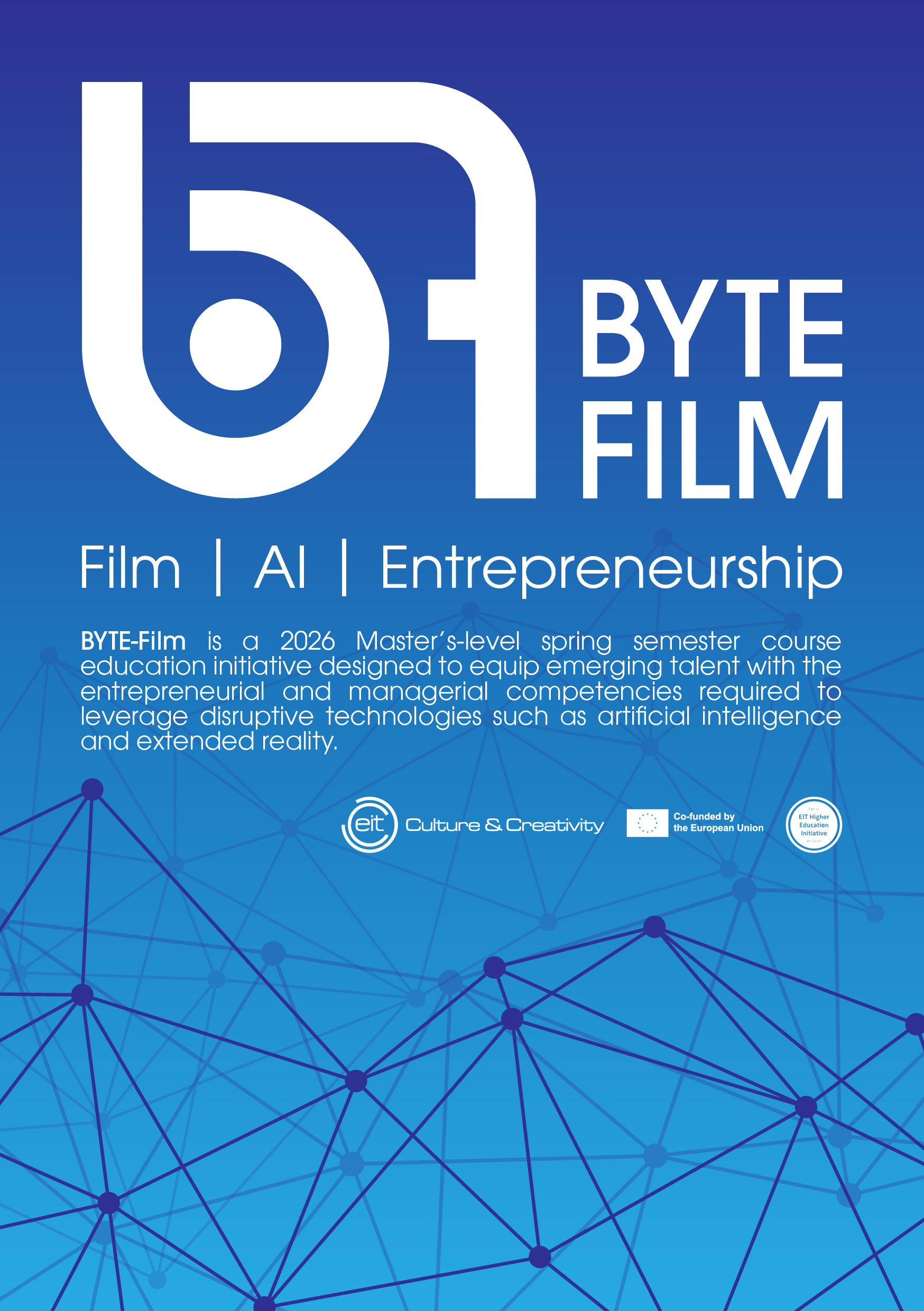 BYTE – FILM is designed to equip emerging professionals with advanced entrepreneurial skills tailored to the evolving audiovisual landscape. The course places particular emphasis on leveraging disruptive technologies such as artificial intelligence (AI) and extended reality (XR), fostering innovation-driven creativity and supporting the development of new business models across Europe’s film and audiovisual sectors.